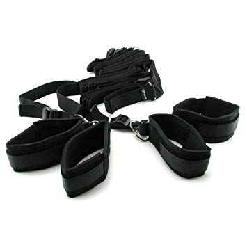Two velvet arm cuffs and two velvet leg cuffs ensure your partners comfort as you strap them down while the love mask blinds them to heighten their senses and leaves them helpless.