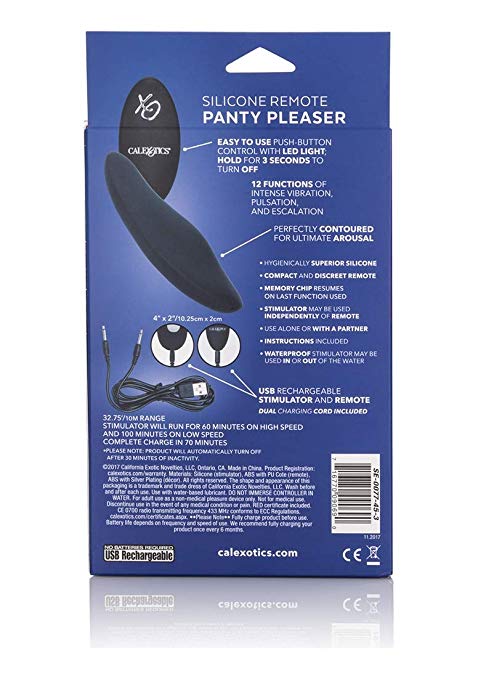 - SECRET STIMULATION: CalExotics Silicone Remote Panty Pleaser is your new favorite dirty little secret. This contoured waterproof vibe is packed with 12 vibration functions to let you, or your lover, control adventurous stimulation from up to 32.5 feet (10 m) away